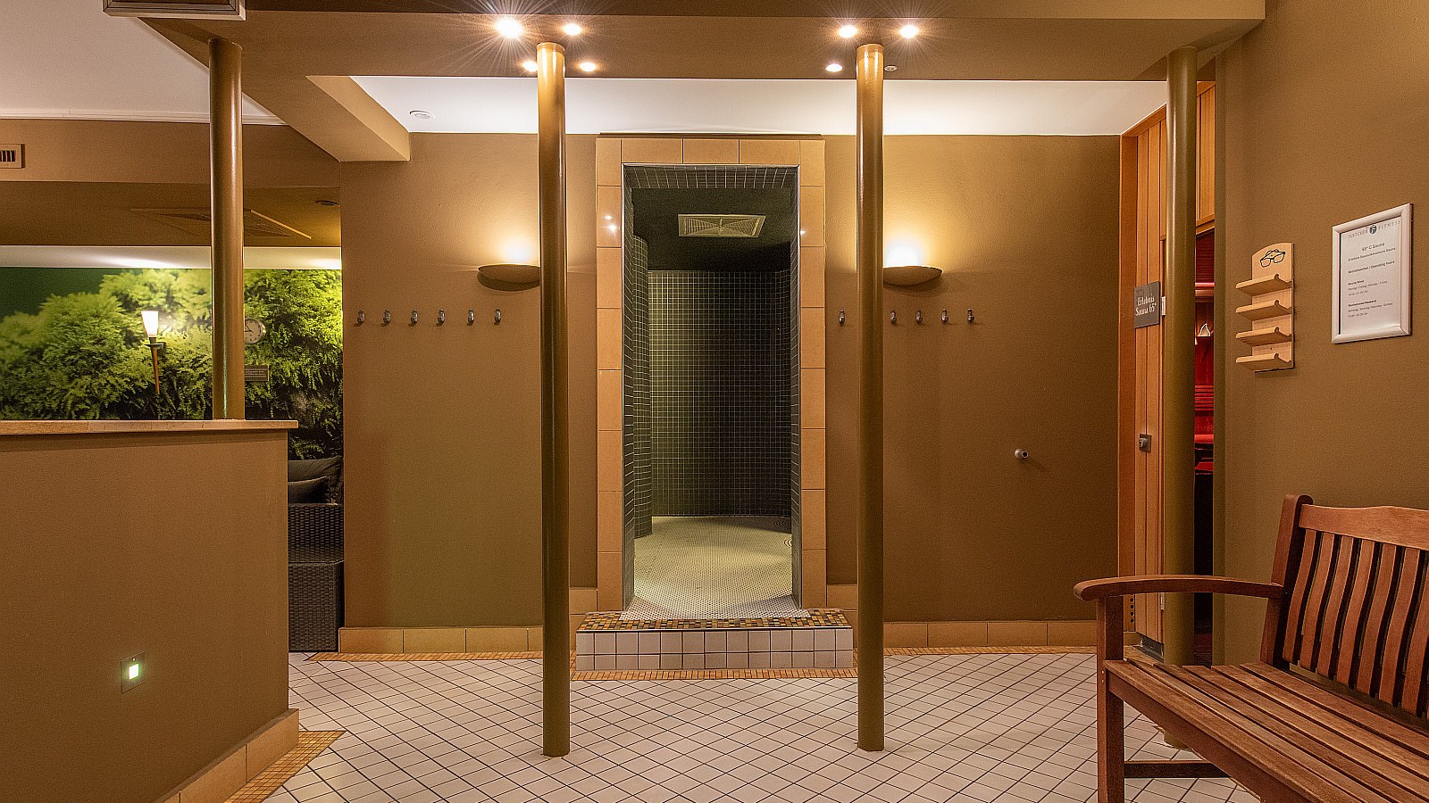 Im Wellnessbereich des Hotels mit Innenpool, Grottendusche, Finnischer Sauna, Biosauna, Infrarotkabine und Ruhebereich finden Sie Entspannung in der kursfreien Zeit. Der Fitnessbereich ist mit Kraft- und Ausdauergeräten sowie einem Freihantelbereich ausgestattet. Ausgezeichnete Joggingpfade beginnen direkt am Hotel.