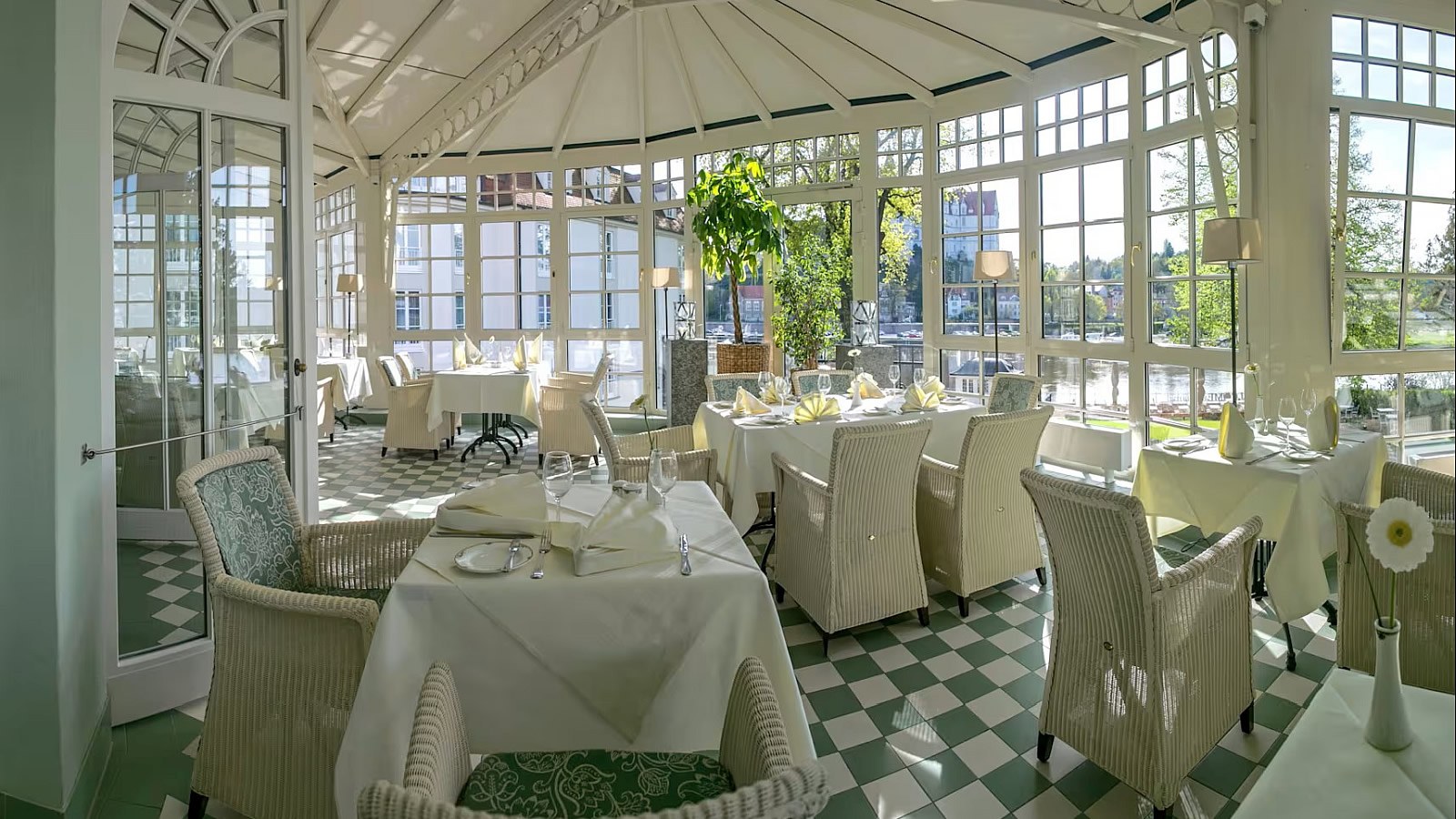Herzstück des Hotels ist das elegante Restaurant "Ohm" in der romantischen Jugendstilvilla mit drei Salons und Wintergarten. Hier genießen Sie am Morgen das reichhaltige Frühstück, am Abend werden Sie mit frischen, regionalen und saisonalen Spezialitäten aus der sächsischen Küche verwöhnt. Im angrenzenden Wintergarten und von der Sommerterrasse aus haben Sie eine direkte Aussicht auf die Elbe und die Albrechtsburg. In der Hotelbar können Sie den Abend entspannt ausklingen lassen.