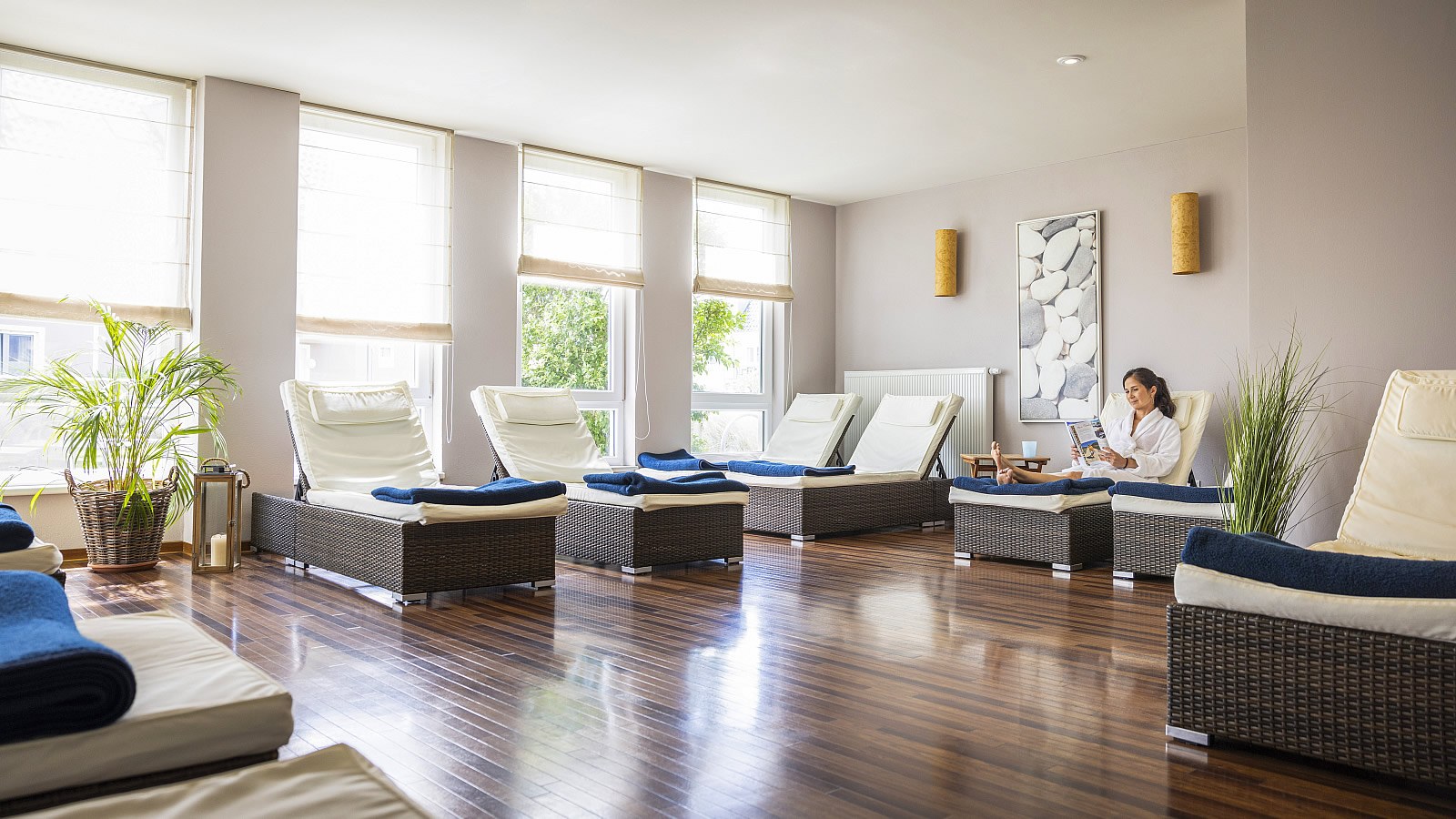 Im TUI BLUE genießen Sie die Freiheit eines Apartments, ohne auf die Vorzüge eines Hotels zu verzichten. Der frisch renovierte Wellness- und Spa-Bereich bietet mit Sylts größtem Indoor-Pool und Whirlpool für Badespaß. Vielfältige weitere Entspannungsmöglichkeiten finden Sie z.B. in der Finnischen Sauna, Bio Sauna, und Dampfbad, Eisbrunnen, Entspannungsraum und Wellness-Duschen. Wer es aktiver mag, findet im Fitnessstudio mit Cardiogeräten, Krafthantel und Kraftgeräten ein Betätigungsfeld. Im "Zentrum für Schönheit und Kosmetik" werden Kosmetikbehandlungen und Massagen angeboten.