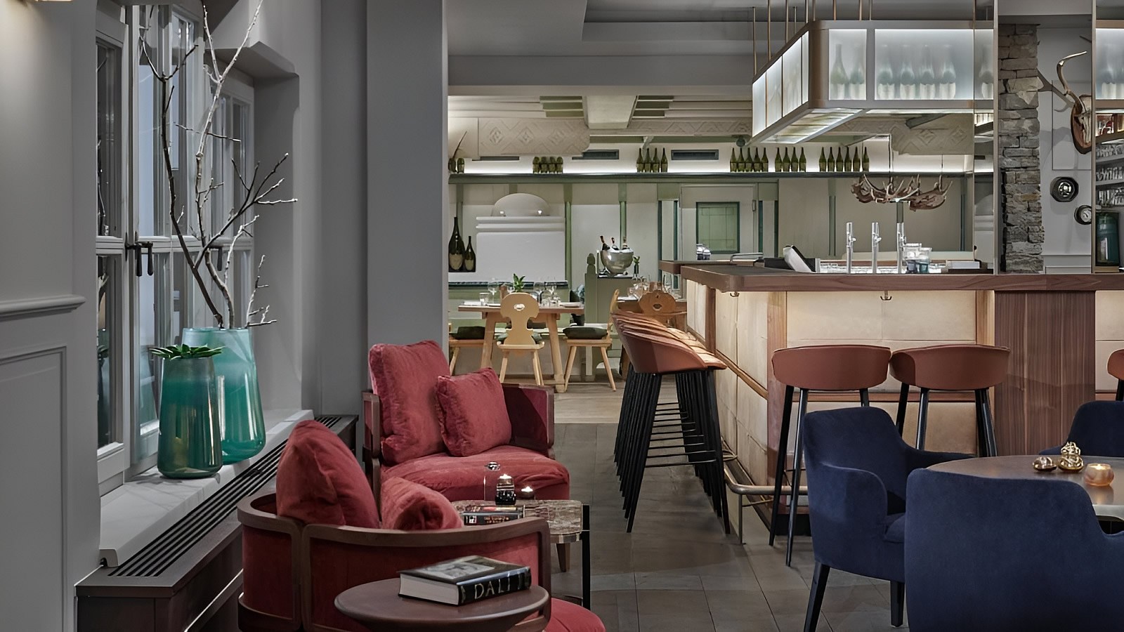 Behagliche Lounge-Bereiche laden zum Verweilen ein. In der stilvollen Bar lässt sich der Abend gemütlich beschließen.