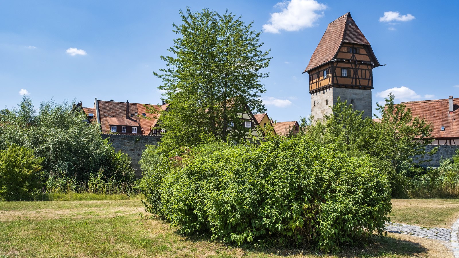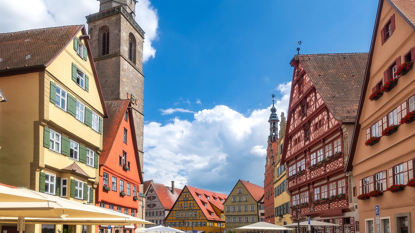 Das romantische Städtchen Dinkelsbühl im mittelfränkischen Landkreis Ansbach ist aufgrund des außergewöhnlich gut erhaltenen spätmittelalterlichen Stadtbildes ein bedeutender Tourismusort an der Romantischen Straße. Das Münster St. Georg beherrscht optisch die ganze Stadt. Mit seinen zahlreichen Türmen und Toren, verwinkelte Gassen und breiten Plätzen, der mauerbewehrten Altstadt, Wassergräben und Weihern gibt es in der "Schönsten Altstadt Deutschlands" (FOCUS) viel zu entdecken.