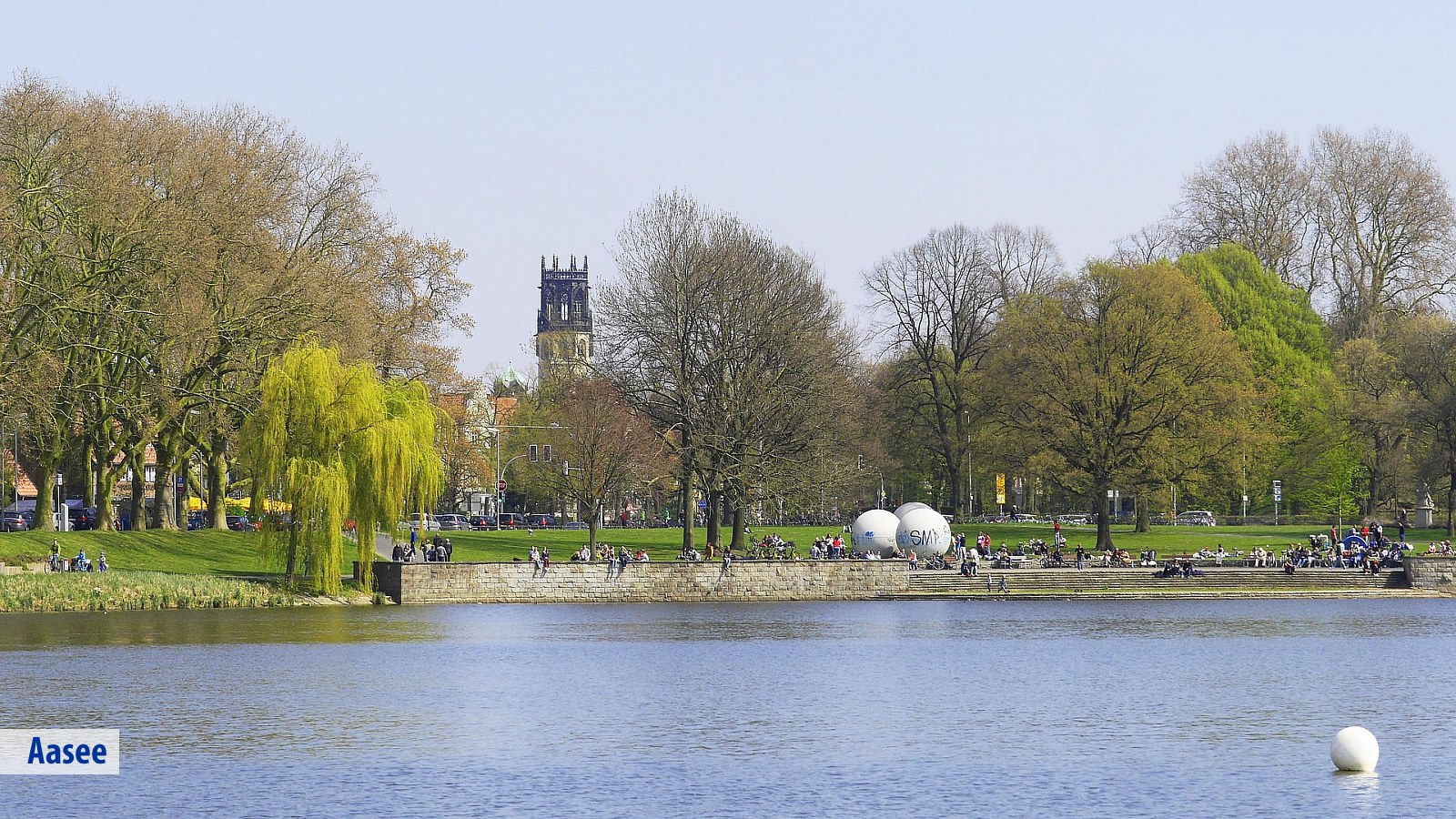 Der Aasee mit seinen weitläufigen Grünanlagen ("Schönster Park Europas") reicht bis in die Innenstadt und bietet Möglichkeiten zum Segeln oder Tretbootfahren.